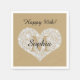 Serviette En Papier Anniversaire, Coeur Diamant, Monogramme Or, Nom