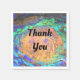 Organisez-vous une fête d'appréciation pour les clients, les employés ou les enseignants en classe? Ces serviettes abstraites d'appréciation disposent d'un motif en mosaïque brillante qui capture la couleur unique et le motif d'une coquille d'ormeau poli. Les carreaux colorés orange, turquoise et violet donnent à ces serviettes en papier un aspect cosmique à mesure que les couleurs s'arc et se mélangent. "Merci" apparaît au centre et peut être facilement customisé pour répondre à vos besoins.