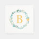 Serviette En Papier Aqua et Yellow Monogramme Floral Wreath