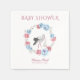 Des serviettes pour votre baby shower qui évoque le calme et la tranquillité de l'hiver ! La cigogne est entourée d'une couronne de pivoines bleues et roses rousses. Éléments correspondants disponibles.