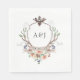 serviettes mariages avec une crête à thème boisé fleurie personnalisable avec les initiales du couple.