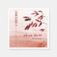 La serviette en papier mariage présente un bel arrière - plan de dégradé d'aquarelle et un design d'inspiration japonaise. Avec une touche minimaliste, la conception comprend une ligne verticale sur le côté gauche, donnant l'illusion que le mot "CHEERS" s'étend vers la partie supérieure du sac. L'arrière - plan est un mélange apaisant de terre cuite et de tons rouges marron, tandis qu'une simple branche apporte une touche d'élégance. Pour personnaliser la serviette, les noms du couple heureux et la date du mariage sont également inclus, ce qui en fait un complément parfait à toute célébration mariage.