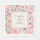 Ces serviettes en papier de fête de 70e anniversaire sont conçues avec une jolie couronne d'aquarelle rose vif florale et verte. Le texte est entièrement personnalisable, donc concevoir ces serviettes de papier pour n'importe quel âge.