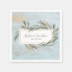 Belles serviettes en papier avec le nom du couple mariage et la date mariage encadrées par une bordure en Aquarelle peinte à la main de sprigs romarins et dressées contre un arrière - plan en bois patiné bleu poussiéreux. Simple et rustique, mais élégant et moderne - parfait pour tant de styles mariages d'aujourd'hui. . . pensez ferme à table mariage, mariage de jardin extérieur, plage ou bord du lac, foodie focus, récolte d'automne et tant d'autres thèmes mariages.