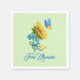 Montrez votre soutien au peuple d'Ukraine avec cette jolie serviette de fête en papier avec du tournesol aquarelle et un papillon aux couleurs du drapeau d'Ukraine sur un pastel vert et blanc pois arrière - plan. Libérez le texte de l'Ukraine dans une police de script élégante
