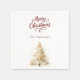 Arrière - plan blanc et texte rouge foncé. Décoré d'un pin enneigé. Joyeux Noël est écrit avec un élégant script de style manuscrit. Personnalisez et ajoutez votre nom de famille
