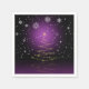 Illustration de Noël luisante et enneigée avec un arbre de Noël brillant et des flocons de neige sur un arrière - plan violet.