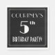 Ce style des années 1920-1930 s'inspire du design de la serviette papier de cinquième anniversaire avec un nom personnalisable, un look art déco complexe inspiré du numéro "5th", le message "BANTHDAY PARTY!", et une frontière multi-lignes. L'arrière - plan est coloré en noir par défaut, mais il peut être customisé à une couleur différente, si désiré. Des serviettes en papier comme celles-ci pourraient être utilisées à une fête d'anniversaire pour quelqu'un qui célèbre son 5e anniversaire. [~Z0000612]