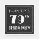 Cette serviette en papier pour fêtes et célébrations de soixante-dix-neuvième anniversaire s'inspire d'un nom personnalisé, d'un style art déco complexe inspiré du numéro "79e", du message "FÊTE D'ANNIVERSAIRE !" et d'une frontière multiligne. Il y a un arrière - plan de couleur noire par défaut, mais il peut être customisé à une couleur différente, si désiré. Des serviettes en papier à thème d’anniversaire comme celles-ci pourraient être utilisées lors d’une fête d’anniversaire célébrant le 79e anniversaire de quelqu’un. [~Z0000612]