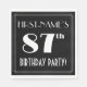Cette serviette en papier de fête et de fête de quatre-vingt-septième anniversaire s'inspire des années vingt-sept, d'un nom personnalisé, d'un style art déco complexe inspiré du numéro "87th", du message "BIRTHDAY PARTY !" et d'une frontière multiligne. Il y a un arrière - plan de couleur noire par défaut, mais il peut être customisé à une couleur différente, si désiré. Des serviettes en papier à thème comme celles-ci pourraient être utilisées lors d’une fête pour célébrer le 87e anniversaire de quelqu’un. [~Z0000612]