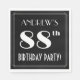 Ce luxueux style années 1920/1930 a inspiré quatre-vingt-huitième anniversaire de design de papier de célébration avec un nom personnalisé, un style art déco complexe inspiré numéro "88th", le message "BIRTHDAY PARTY!", et une frontière multi-lignes. Par défaut, il dispose d'un arrière - plan de couleur noire, mais il peut être customisé à une couleur différente, si vous le souhaitez. Des serviettes en papier comme celles-ci peuvent être utilisées pour célébrer le quatre-vingt-huitième anniversaire de quelqu’un. [~Z0000612]