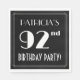 Ce modèle des années 1920-1930 a inspiré quatre-vingt-douze ans de fête et la conception de serviette en papier avec un nom personnalisable, un style art déco fantaisie inspiré du numéro "92e", le message "FÊTE D'ANNIVERSAIRE !", et un motif frontalier composé de lignes. Il y a un arrière - plan de couleur noire par défaut, mais il peut être customisé à une couleur différente, si désiré. Des serviettes en papier comme celles-ci pourraient être utilisées lors d’une fête organisée pour célébrer le 92e anniversaire de quelqu’un. [~Z0000612]
