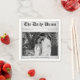 Jolies serviettes de réception de mariage en forme d'article de journal. Personnalisez-les avec les détails de votre événement et une photo des mariés.