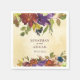 Le mariage de automne Napkin représente de belles aquarelles d'automne rustique, fleurs florales pourpres, oranges brûlées, fleurs bleues et jaunes et verdure. Caractéristiques du nom de la mariée, du marié et de la date.-