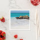 Serviettes en papier avec une belle photo. Une plage de sable blanc, au surf doux. Une eau tropicale turquoise entoure un rocher déchiqueté.