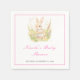 Jolies serviettes de baby shower avec un adorable lapin et des fleurs roses et jaunes. Parfait pour un baby shower de printemps ou d'été. Les mots peuvent être changés en fonction de vos propres détails ou exigences