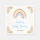 Cette serviette mignonne et capricieuse présente un arc-en-ciel boho, des confettis et des arrangements floraux avec de l'herbe pampa dans les tons beige, bleu et marron neutre. Le texte combine écriture manuscrite et polices sans serif pour un look élégant et moderne. C'est parfait pour un baby shower de printemps ou d'été. Graphiques par www.etsy.com/uk/shop/SunflowerDayLove