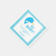 Arrière - plan bleu glacé et un adorable bébé narval en haut à gauche. La typographie au sommet est "Oh ! Bébé !" Un modèle de nom au milieu est créé pour vous avec du texte "Baby shower" en dessous. Crédit graphique étroit : PrettyGrafik.