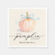 Un mignon petit citrouille, attaché avec un élégant ruban bleu, met en évidence ces serviettes de baby shower garçon, avec "Un petit citrouille est en route" et le nom de la mère. (Disponible aussi en rose et ivoire.) CORRESPONDANCE d'objets dans notre collection.
