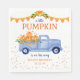 Ces adorables serviettes en papier avec un camion bleu aquarelle chargé de citrouilles d'automne, confettis de parties scintillant, le nom du nouveau bébé et la date d'échéance du bébé sont parfaits pour votre baby shower d'automne. Leur design sucré avec est traditionnel mais moderne. Sélectionnez Personnalisez ce modèle pour les rendre uniques. En quelques secondes, vous verrez votre super mignon garçon petit citrouille baby shower serviettes de déjeuner en papier.