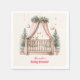 Venez célébrer la joie d'un baby shower d'hiver avec ce design confortable et élégant. Un lit d'enfant en bois peint à la main se trouve sous un chapiteau de draperies rousses et de guirlandes de vacances, flanquées d'arbres à feuillage persistant et de cadeaux emballés. Des textures douces d'aquarelle et des accents festifs créent une atmosphère sereine et magique pour accueillir un petit peu.