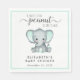 Des serviettes jolies et neutres pour votre baby shower avec "A Sweet Little Peanut Is On Her Way" écrit dans une typographie douce et grise, un script élégant avec des swashes, et une aquarelle pastel vert menthe d'un bébé éléphant. Personnalisez le nom et la date de la douche de la future mère dans une simple typographie grise.