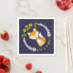 serviettes de baby shower illustrées d'un renard et d'une couronne avec un glacier, des feuilles et des fleurs.