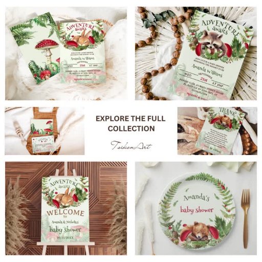 L'aventure attend la collection de baby showers de champignon forestier