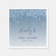 Ces serviettes en papier baby shower à la mode sont dotées d'une bordure brillante bleue imitant la parties scintillant et d'un arrière - plan à l'ombre bleue. Personnalisez-les avec le nom de la mère - à être dans un script d'écriture manuscrite bleu, avec les mots "Baby shower" et la date ci-dessous dans la police sans serif.