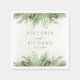 Belles serviettes mariages avec aquarelle botanique peinte à la main illustrant la verdure hivernale, les branches de pin et d'épinette, les cônes et les baies sèches. Un choix parfait pour les mariages à thème hiver ou Noël.