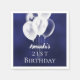 Une serviette pour une fête d'anniversaire girly et glamour de 21ème (ou tout âge). Un arrière - plan bleu marine avec des ballons blancs. La couleur bleue est inégale. Personnalisez et ajoutez un nom et 21 ans. Lettres blanches.