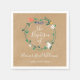 Doté d'une guirlande fleurie moderne de fleurs printanières sur un arrière - plan kraft rustique, ce baptême ou cette serviette chic neutre genre peuvent être personnalisés avec vos détails spéciaux de l'événement. Conçu par Thisisnotme©