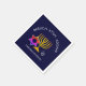 Serviettes en papier élégantes et élégantes HANOUKKA BLESSINGS. Le design montre un MENORAH couleur or avec l'étoile multicolore de DAVID et gris argenté DREIDEL. En haut il y a le texte courbe qui dit BARUCH ATAH, ADONAI (Béni soit toi, ô Dieu) et en dessous le texte dit HANOUKKA BLESSINGS. TOUT TEXTE EST PERSONNALISABLE, vous pouvez donc personnaliser avec votre propre choix de salutation et de texte. Les couleurs arrière - plans sont bleu nuit. D'autres versions sont disponibles dans la collection HANOUKKA par Berean Designs.