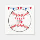 Baseball Sports 1er Anniversaire serviette / Mignonne anniversaire de fête serviettes pour une 1ère fête d'anniversaire dans un thème de baseball. Le design est composé d'un baseball et de drapeaux de bunting aux couleurs rouge, blanc et bleu. Personnalisez cette serviette de fête d'anniversaire avec le nom de l'enfant.