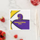 Cette serviette de basket-ball à thème pour un anniversaire de basket-ball ou une fête d'équipe présente l'image d'un basket-ball qui a alternativement des panneaux violet, blanc et or - customiser le texte en violet et or - par katz_d_zynes