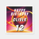 Basketball Ball Vivid Sports Joyeux Anniversaire Serviettes. Ce design moderne a le texte "Joyeux anniversaire", un nom personnalisé, l'âge et un ballon de basket sur un arrière - plan vivant et dynamique. Le thème du basket le rend parfait pour l'anniversaire d'un fan de basket. Personnalisez les serviettes avec votre nom et votre âge.
