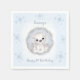 Des serviettes en papier sur le thème de l'ours d'hiver aux couleurs bleu, blanc et gris avec un ours polaire mignon et des flocons de neige pour le 1er hiver du garçon ou toute fête d'anniversaire. Personnalisez facilement le texte. - Kate Eden Art
