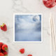 Des serviettes en papier avec un ciel magique d'imaginaire avec des nuages bleus et une grande belle lune. 2 cygnes blancs qui volent ensemble.