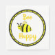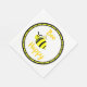 Bee Happy souriant bee jaune bosse avec rayures noires et ailes clignotantes avec texte écrit en jaune doré. Buzz est écrit des deux côtés de la bordure circulaire jaune noir avec des pois noirs. Serviettes en papier amusantes pour les fêtes et festivités chaudes du printemps et de l'été. Oeuvre originale © TamiraZDesigns.