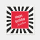 Cette conception polyvalente de serviette de soirée comporte des rayures de starburst noir et blanc entourant un cadre rouge vif avec votre texte personnalisé. Présenté ici comme une serviette de fête d'anniversaire, vous pouvez customiser cet objet pour n'importe quelle fête d'événement. Modifiez la police et la taille de police comme vous le souhaitez pour accommoder tout texte ou message que vous choisissez d'insérer. Les plaques de papier correspondantes sont disponibles dans cette conception.