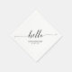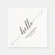Ajoutez des détails élégants à votre journée spéciale avec cette serviette de soirée personnalisée. Ce design présente une typographie stylisée "hello" en noir avec du texte personnalisé. Vous pouvez personnaliser le texte pour n'importe quel événement ou fête. Des invitations et des fournitures de fête correspondants sont disponibles dans ma boutique BaraBomDesign.