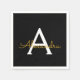 Serviette En Papier Black Gold Script Monogramme Nom Moderne