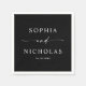 Add a timeless and elegant touch to your wedding reception with these personalized black wedding napkins. Featuring a modern serif font paired with a soft handwritten script, this minimalist design highlights the couple’s names and wedding date in a refined and sophisticated style. Perfect for wedding receptions, cocktail hours, engagement parties, rehearsal dinners, and anniversary celebrations. These custom napkins complement modern, classic, and black tie weddings beautifully. The elegant black background with clean white typography creates a luxury look that feels both modern and timeless. Ideal for cocktail napkins, bar napkins, or dessert tables. These custom wedding napkins are a stylish detail guests will notice and remember, especially for couples who love clean design, modern elegance, and classic black wedding aesthetics.