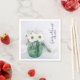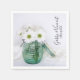 Les élégantes doudaines blanches en Blue Vase Papier Mariage Napkins peuvent être personnalisées avec les noms de la mariée et du marié et date à utiliser à votre jardin d'été douche nuptiale ou mariage cocktail et réception. Ces serviettes jetables à fleurs chic et rustiques sont ornées d'une photographie florale d'un pot en verre bleu rempli de fleurs margueuses blanches et de satin blanc.