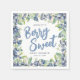 Serviette de Baby shower Berry Sweet. Ajoutez une touche de charme à votre baby shower avec cette serviette sucrée aux baies, avec une belle bordure de bleuets aquarellés et de feuilles verts autour du bord. Idéal pour un baby shower garçon mais aussi pour une fille, ce design apporte une touche fraîche et élégante à votre célébration. La serviette présente un mélange d'écriture manuscrite audacieuse et d'une police simple en bleu marine et bleu marine, créant un look élégant et accueillant. Entièrement personnalisable, vous pouvez mettre à jour le texte, les couleurs et l'arrière - plan pour qu'il corresponde à votre thème de baby shower. Un détail doux et pratique pour votre journée spéciale !