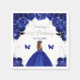 Cette serviette de fête d'anniversaire élégante et glamour présente une belle princesse aux cheveux bruns dans une robe de bal bleu foncé. Le texte combine écriture manuscrite et polices sans serif modernes pour un look élégant et sophistiqué. Les arrangements floraux, papillons et confettis argentés créent un mélange parfait de rustique et de chic. Graphiques par www.etsy.com/uk/shop/SunflowerDayLove