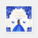 Cette serviette de fête d'anniversaire élégante et glamour présente une belle princesse à la peau foncée dans une robe de bal bleu foncé. Le texte combine écriture manuscrite et polices sans serif modernes pour un look élégant et sophistiqué. Les arrangements floraux, papillons et confettis d'or créent un mélange parfait de rustique et de chic. Graphiques par www.etsy.com/uk/shop/SunflowerDayLove