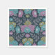 Ces serviettes sont ornées de fleurs dans les tons violets, bleus et vert olive, entourées de frondes de fougères violettes muettes et de feuilles sur un arrière - plan bleu foncé.