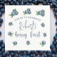 Anniversaire de enfant party! avec l'aquarelle illustration de bleuets avec des feuilles. Le texte dit "baies d'abord".