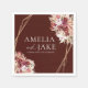 Elevate your table setting with this Boho Burgundy & Gold Frame Wedding Napkin, designed in rich rosewood tones with modern gold geometric lines and lush watercolor florals.